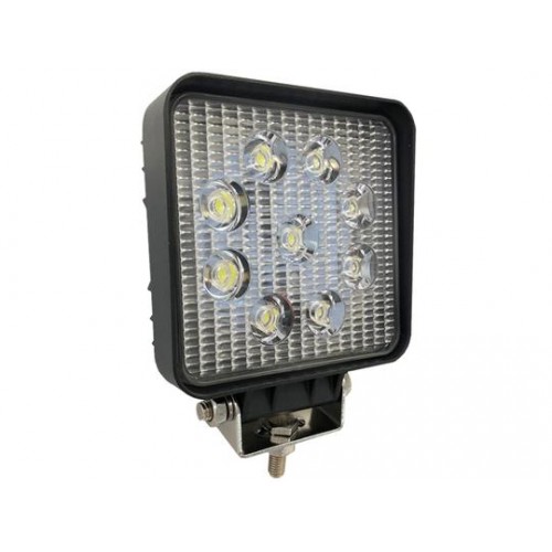 LED Work Lamp, 27 Watt, 1900 Lumen, 9-30 Volt, 60 Degree Flood Beam, Solid Aluminium Housing & Tough Polycarbonate Lens, 109x109x45mm Square.